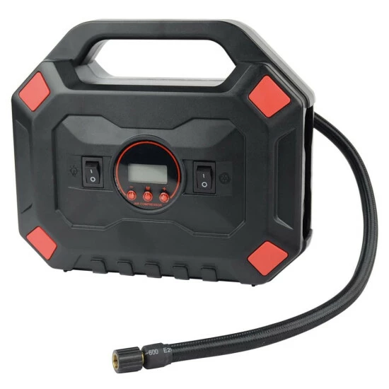 – Dieser kompakte Brüder Mannesmann 12 V Kompressor ist ideal zum Aufblasen von Fahrzeugreifen und anderen aufblasbaren Gegenständen. – Dank der 2 im Lieferumfang enthaltenen Ventiladaptern kann er nicht nur für Autoreifen verwendet werden, sondern auch für andere aufblasbare Gegenstände rund ums Haus. – Er verfügt über eine integrierte LED-Arbeitslampe, einen maximalen Druck von 7,6 bar und wird über die 12-V-Zigarettenanzünderbuchse Ihres Autos mit Strom versorgt.