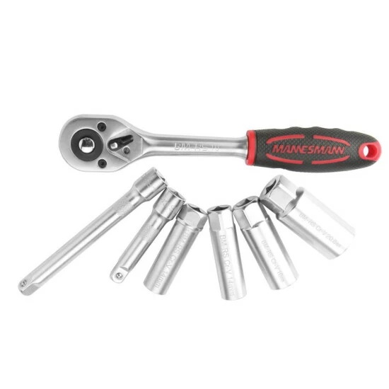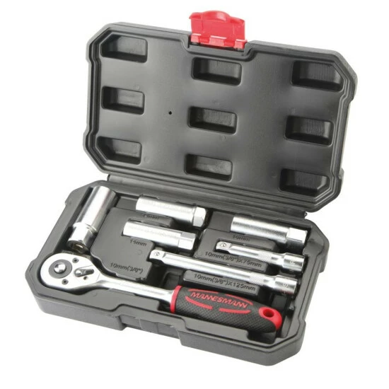 Das 7-teilige Zündkerzenmontage-Set von Brüder Mannesmann mit einem 3/8″ Vierkant-Antrieb wurde für das präzise Anziehen verschiedener Zündkerzen und Glühkerzen entwickelt.