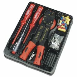 Dieser 82-teilige Auto-Elektrosatz ist für Arbeiten an der Fahrzeugelektronik aller Art geeignet. In diesem Set befindet sich alles, von Schrumpfschläuchen über Kabelschuhklemmen bis hin zum Autolichtprüfer, was sie zum in Betrieb halten der Technik im Kfz brauchen.