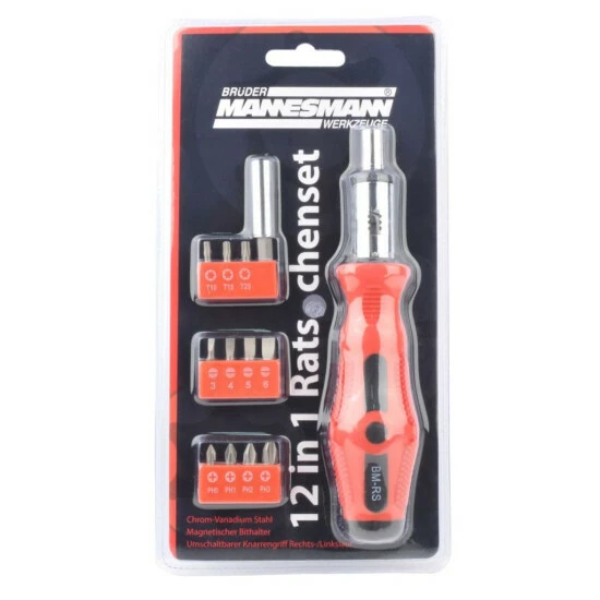 Brüder Mannesmann Bitsatz 12-in-1 | M29811 | Hersteller-Nr.: M29811 | EAN: 4003315847922 | Produkttyp: Bit-Sets | – Ratschenschraubendreher – magnetischer Bithalter – 11 Bits, sortiert | Kategorie: Zubehoer > Bits > Bit-Sets