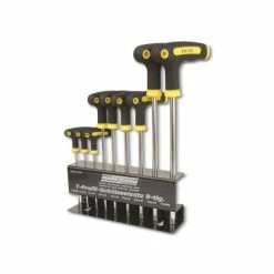 Dieser 9 teilige T-Profil-Schlüsselsatz besteht aus 9 Schlüsseln in den Größen T10, T15, T20, T25, T30, T35, T40, T45, T50. Die Schlüssel sind aus Chrom-Vanadium-Stahl gefertigt und werden in einem praktischen Metallhalter zur Befestigung an der Wand Dieser 9 teilige T-Profil-Schlüsselsatz besteht aus 9 Schlüsseln in den Größen T10, T15, T20, T25, T30, T35, T40, T45, T50. Die Schlüssel sind aus Chrom-Vanadium-Stahl gefertigt und werden in einem praktischen Metallhalter zur Befestigung an der Wand geliefert.