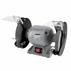 Der Tischschleifer ist mit zwei Schleifscheiben (grob und fein) mit einem Durchmesser von 200 mm ausgestattet. Die Schleifmaschine ermöglicht Schleifarbeiten wie das Schärfen von Messern, Scheren oder Klingen.