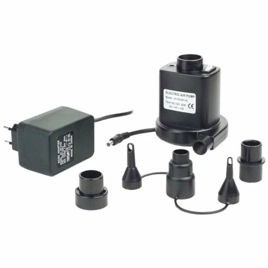 Mit der elektrischen Luftpumpe von Brüder Mannesmann können Sie schnell und einfach große aufblasbare Artikel wie Schlauchboote, Luftmatratzen und Planschbecken aufblasen und entleeren. Der Kompressor wird vom 12V Zigarettenanzünder Ihres Fahrzeugs oder 230 V Netzstrom betrieben. Die Pumpe hat eine Kapazität von 240 l / min und wird mit 5 verschiedenen Ventiladaptern geliefert.