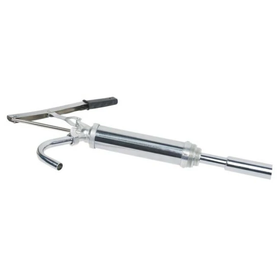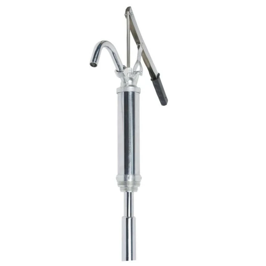 Die Fasspumpe besteht aus Metall und besitzt ein Teleskoprohr von 45 bis 89 cm Länge. Die Kapazität der Pumpe beträgt ca. 20 Liter pro Minute. Sie ist für nicht-aggressive und selbstschmierende Flüssigkeiten, wie zum Beispiel Petroleum, Heizöl, Diesel usw., geeignet.