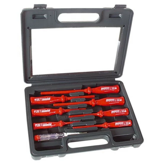 8pcs Schrank umfassend 7 isolierten Schraubendrehern 1000V Chrom-Vanadium-Stahl für Elektriker (TUV GS + Standard), 1 Schraubendreher Spannungsprüfer