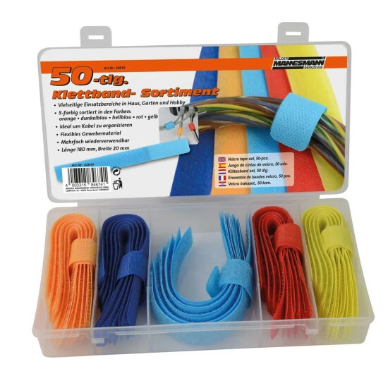Brüder Mannesmann Klettband-Set 50-tlg., Klettverschluss Kabelbinder Kabelordnung