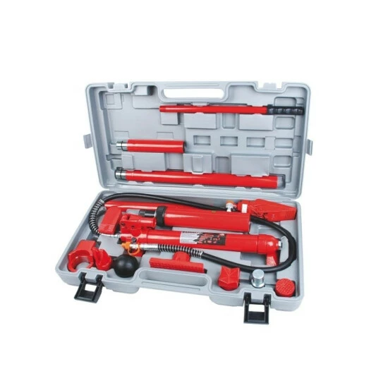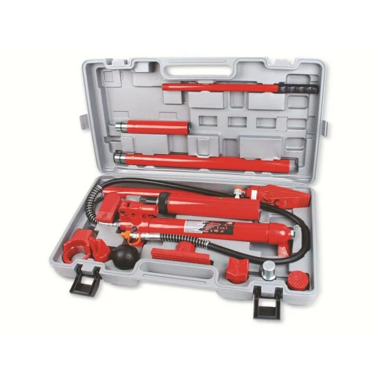 Hydraulischer Richt- und Ausbeulsatz für alle Arbeiten an Kfz-Karosserien. Beinhaltet Pumpe, Hubzylinder, Spreizgerät, Kupplungszapfen und mehr.