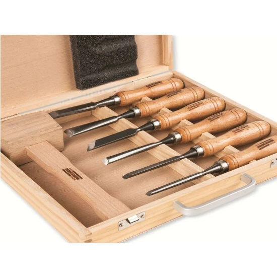 Der 7-teilige Schnitz-Werkzeugsatz beinhaltet unterschiedliche Beitel sowie 1 Schreinerklüpfel für kreative Schnitz- und Holzarbeiten. Geliefert wird der Schnitz-Werkzeugsatz in einer robuster Holzkassette zur sicheren Aufbewahrung der einzelnen Der 7-teilige Schnitz-Werkzeugsatz beinhaltet unterschiedliche Beitel sowie 1 Schreinerklüpfel für kreative Schnitz- und Holzarbeiten. Geliefert wird der Schnitz-Werkzeugsatz in einer robuster Holzkassette zur sicheren Aufbewahrung der einzelnen Werkzeuge.