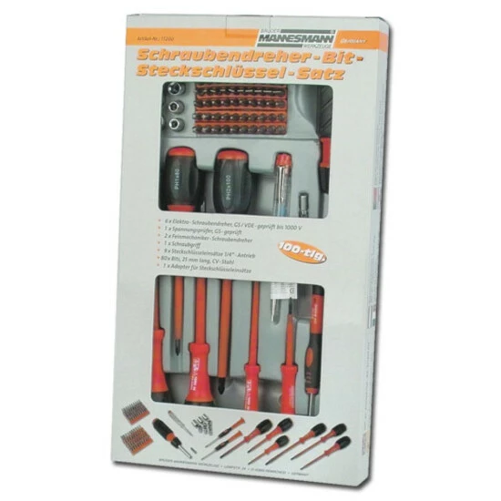 Der Mannesmann Schraubendreher-Bit-Steckschlüssel-Satz mit 100 Teilen bietet dem Heimwerker die Lösung vielerlei anfallender Arbeiten in den eigenen 4 Wänden.
